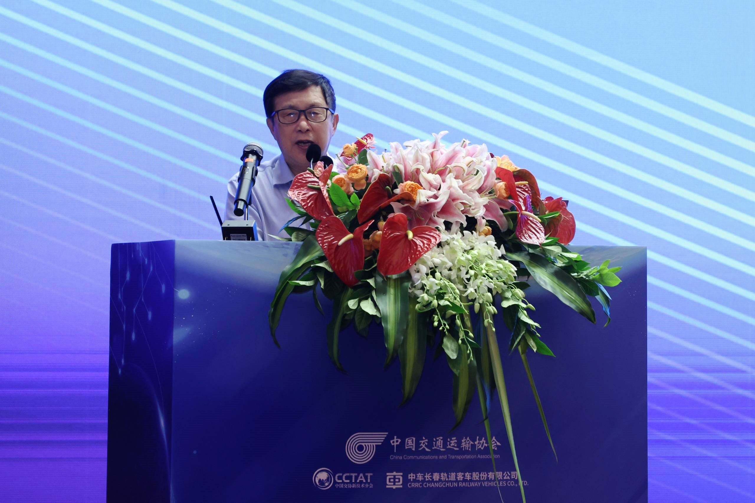 大会主旨报告环节,由中国交通运输协会新技术促进分会副会长曹广河主持。中国科学院院士、中国科学院长春光学精密机械与物理研究所研究员王立军,中国科学院院士、长春应用化学研究所研究员陈学思,国家铁路局设备监督管理司副司长弓瑞明,香港铁路有限公司客运服务创新及科技(车务)总经理邓绍祥,中车长客车股份公司副总工程师兼磁浮研究所所长于青松,铁信诚认证服务(北京)有限公司执行董事杨洪权分别做题目为《半导体激光芯片与技术》生物可降解高分子材料及其应用》《铁路装备更新及重点支持方向报告》《城市轨道交通装备数字化运维展望》《氢能轨道交通交通车辆技术研究现状及展望》《浅析铁路产品认证工作》的主旨报告。